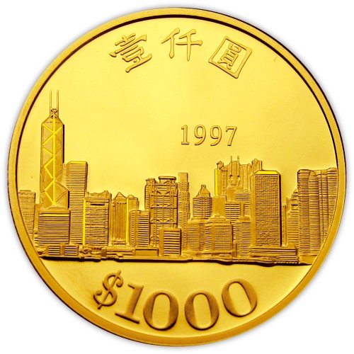 這枚金幣可不是普通的黃金,它是一枚閃閃發光的「時光膠囊」!想像一下1997年,香港正經歷一個歷史性的轉折點,告別一個時代,迎向另一個新篇章。這枚金光璀璨的圓盤,完美捕捉了那個劃時代的「回歸」時刻。